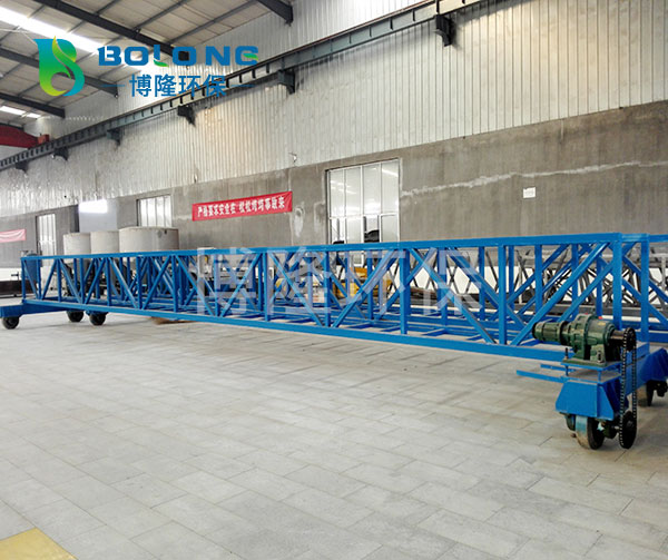 本設備由四點支撐行走大梁橫跨在平流式沉淀池上,雙邊驅動,池兩邊均鋪設鋼軌,從池的一端運行到池子的另一端,邊行走邊吸泥,撞到行程控制,折返行走,回程吸泥,完成一個工作周期。